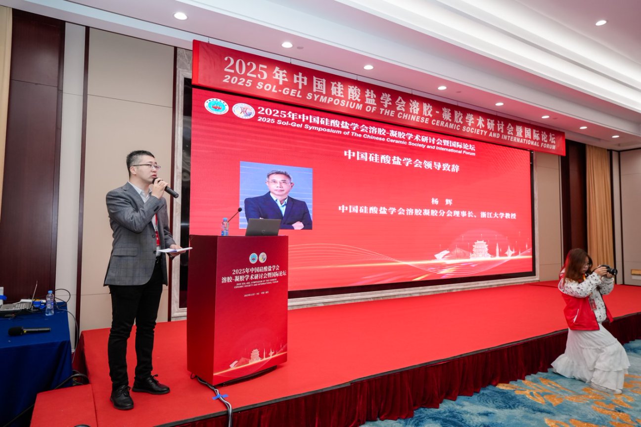 中国硅酸盐学会溶胶凝胶分会理事长、我院常务副院长杨辉教授发表致辞。他回顾了中国溶胶-凝胶分会的发展历程与系列会议的学术传承,强调溶胶-凝胶技术作为多学科交叉的关键支撑,在先进材料创新与产业升级中发挥的核心作用,呼吁学界与产业界深化合作,以原始创新驱动行业高质量发展。