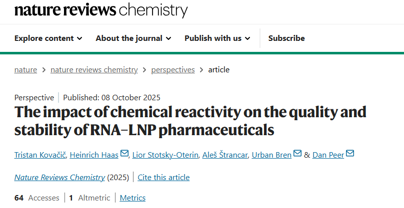 Kovačič, T., Haas, H., Stotsky-Oterin, L. et al. The impact of chemical reactivity on the quality and stability of RNA–LNP pharmaceuticals . Nat Rev Chem (2025).