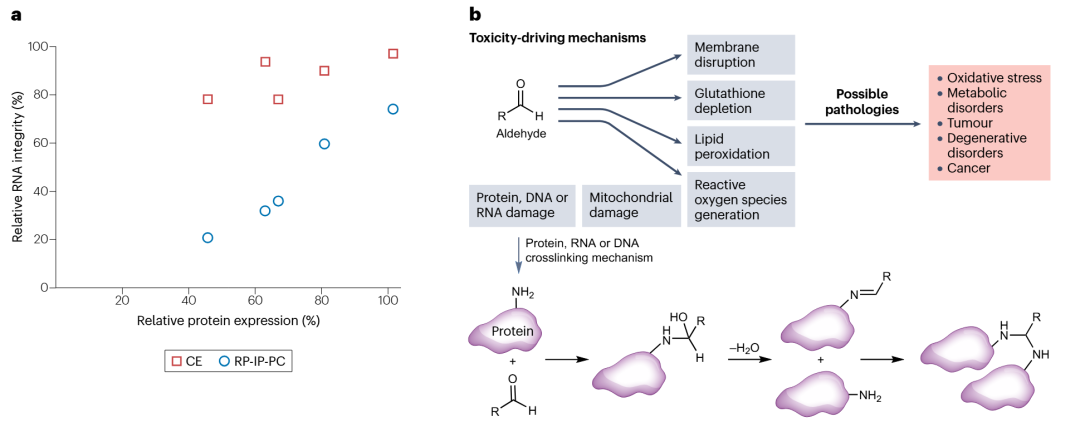 LNP降解产物可能对生物系统产生多种影响。例如,RNA–脂质加合物可能导致蛋白质翻译效率降低,产生不完整的蛋白质、截短蛋白或突变蛋白,这些蛋白可能具有未知的毒性。此外,脂质降解产生的醛类物质可能与RNA发生反应,形成交联,增加RNA的疏水性,影响其与细胞组分的相互作用。这些降解产物还可能引发免疫反应,影响药物的安全性。因此,需要深入研究LNP降解产物的生物学影响,以优化LNP的设计和应用。