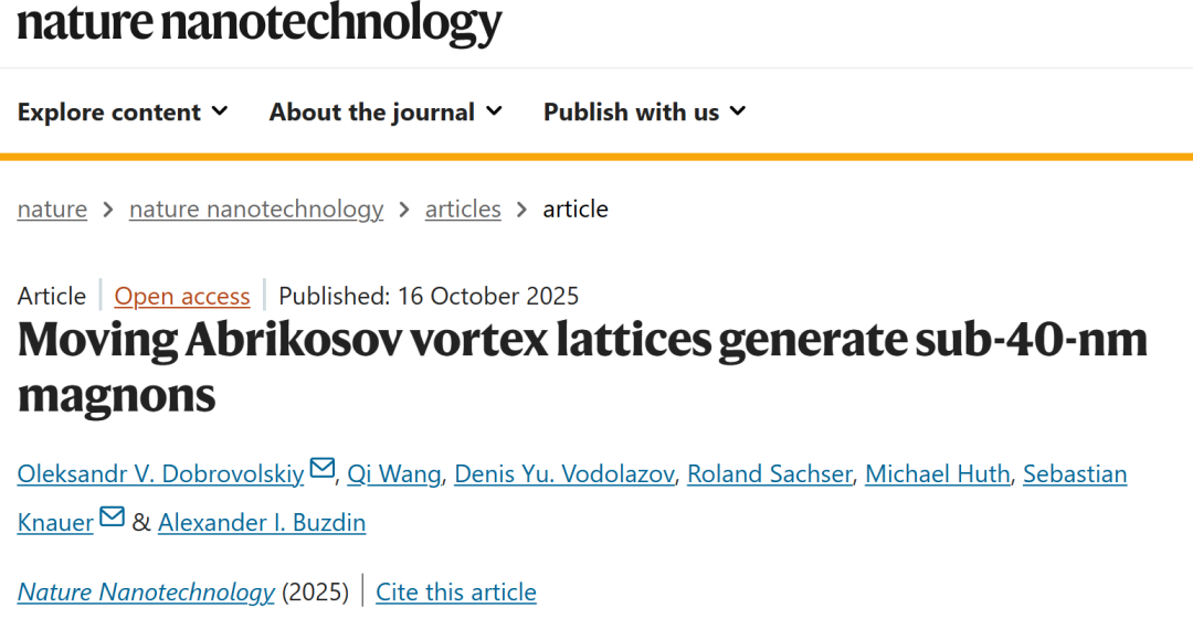 Dobrovolskiy, O.V., Wang, Q., Vodolazov, D.Y. et al. Moving Abrikosov vortex lattices generate sub-40-nm magnons. Nat. Nanotechnol. (2025). https://doi.org/10.1038/s41565-025-02024-w