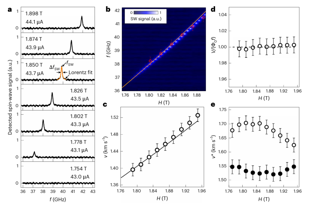 近日,德国布伦瑞克工业大学Oleksandr V. Dobrovolskiy,奥地利维也纳大学Sebastian Knauer等在Nature Nanotechnology上发文,报道了在Co–Fe带中,利用磁通量量子magnetic flux quanta(即阿布里科索夫涡旋Abrikosov vortices)产生磁振子,以超过1kms−1速度在相邻Nb–C超导体中移动。