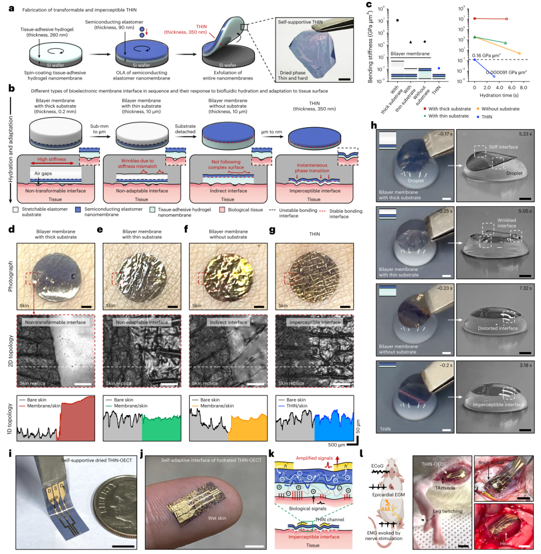 图1 | 基于THIN电化学晶体管的、自支撑且自适应的组织-膜界面。
